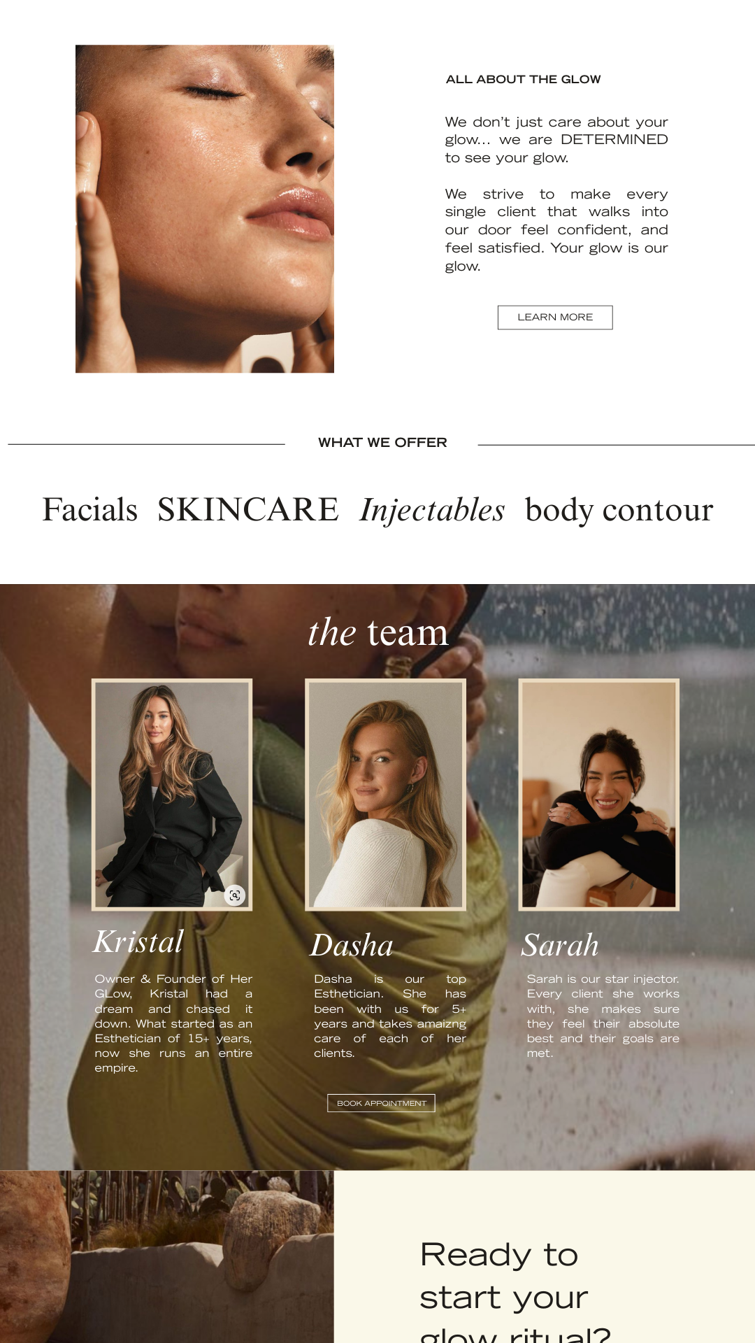 I designed Her Glow’s website with intentional strategy, elevated branding, and precise user experience to position them as the go-to spa in their community.