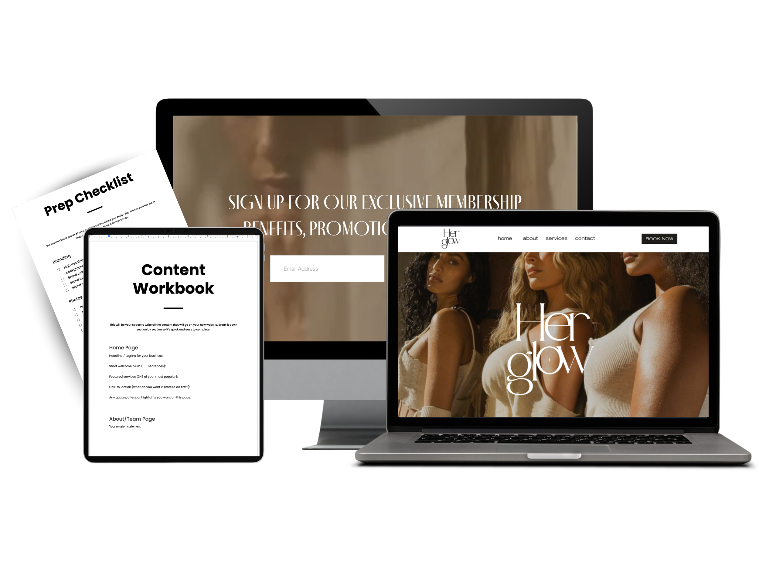 Upgrade with our Content Workbook Add-On to easily organize all your website copy, photos, and details in one simple, seamless worksheet.